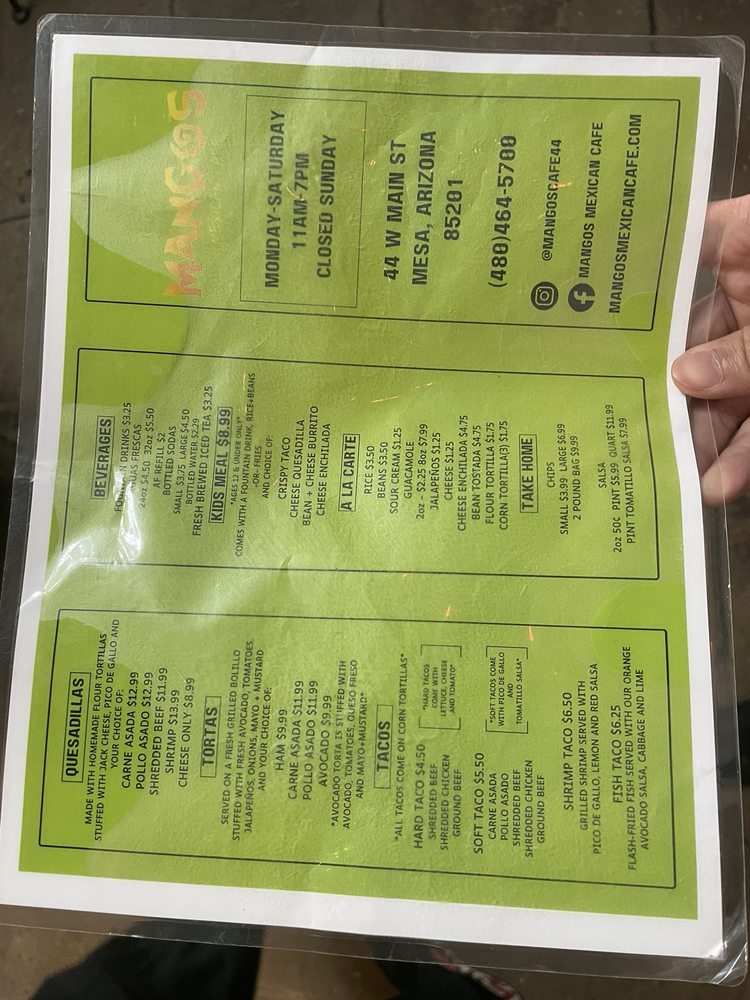 Welcome to Mangos Mexican Cafe, a vibrant spot nestled in Mesa, AZ, where authentic Mexican flavors come alive. Offering a delightful array of dishes, this casual eatery specializes in handcrafted burritos, such as the flavorful shrimp burrito and the classic veggie burrito, all wrapped in homemade flour tortillas.